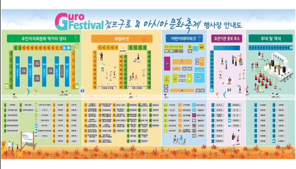 신도림 오페라하우스에서는 아시아 문화축제 축하 공연이 열리며 안양천에는 올해 신설된 주민참여형 프로그램인 구로가족 버스킹 한마당이 마련된다.