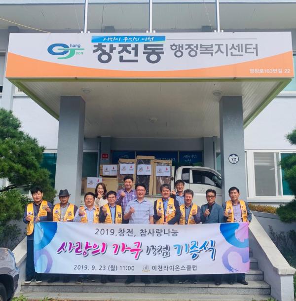 이천라이온스클럽은 지난 23일 창전동행정복지센터를 방문해 사랑의 가구 13점을 전달했다.