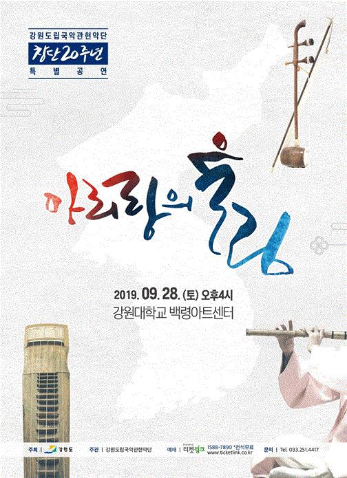 강원도립국악관현악단은 오는 28일 오후 4시, 춘천 백령아트센터에서 창단 20주년 특별 기획공연 ‘아리랑의 울림’을 무대에 올린다.