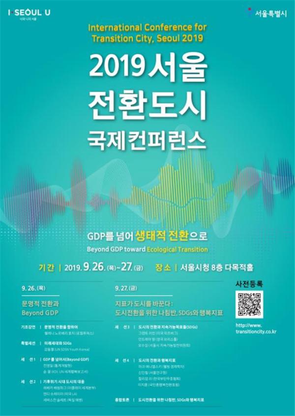 서울시는 26일과 27일 양일 간 서울시청 8층 다목적홀에서 ‘2019 서울 전환 도시 국제 컨퍼런스’를 개최한다고 밝혔다. 올해 주제는 ‘GDP를 넘어 생태적 전환으로’다.