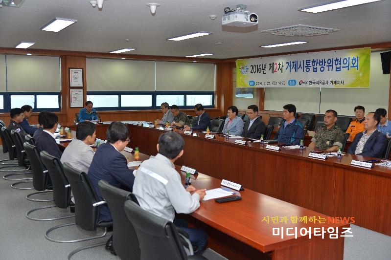 [미디어타임즈 = 최귀복 기자] 거제시(시장 권민호)는 지난 24일, 경남동부보훈지청장, 거제경찰서장, 거제대대장 등 주요 안보 기관단체장들이 참석한 가운데 국가중요시설인 한국석유공사 거제지사에서 2016년 제2차 거제시 통합방위협의회를 개최했다.