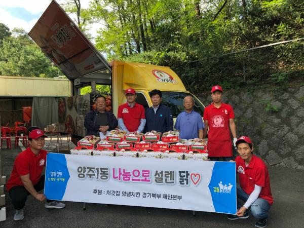 양주시 양주1동은 지난 23일 처갓집양념치킨 경기북부체인본부에서 치킨 100마리를 후원받아 관내 독거노인 등 저소득층 가구를 대상으로 나눔 행사를 진행했다.