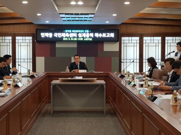 의정부시는 24일 시청 소회의실에서 홍귀선 의정부시 부시장을 비롯한 시의원, 전문가, 건축 관계자 등 15여 명이 참석한 가운데 ‘민락 국민체육센터 건립공사 기본 및 실시설계 용역’ 착수보고회를 개최했다