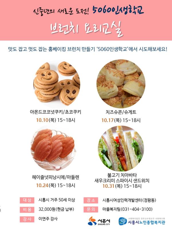 시흥시 거주 50세 이상이면 누구나 신청 가능하며 신청방법은 시흥시노인종합복지관으로 전화 및 노인복지관 방문 접수 가능하다. 브런치에 관심 있는 5060세대들의 많은 참여를 바란다.