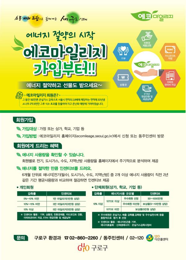 구로구가 에코마일리지 신규 회원을 모집하고 있다.