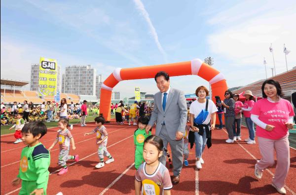 이날 어린이들은 나이에 따라 걷기나 200~400m 마라톤을 하고 장애물과 에어바운스, 창의블록 등 체험부스를 즐겼다.