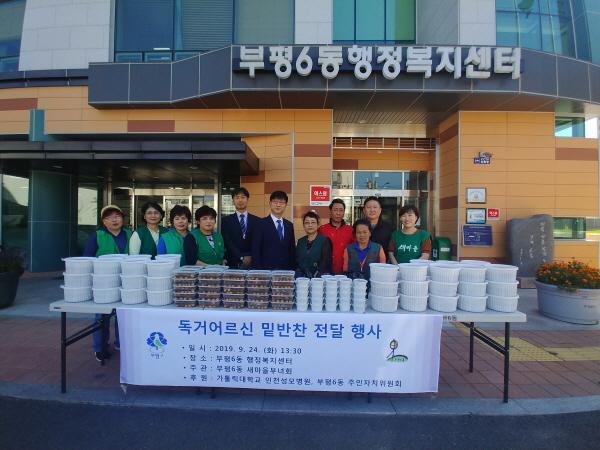 이번 행사는 가톨릭대학교 인천성모병원과 부평6동 주민자치위원회의 후원으로 이뤄졌다. 부녀회 회원들이 직접 반찬을 만들어 지역 내 저소득 노인 80명에게 전달하는 등 더불어 살아가는 이웃사랑 봉사를 실천했다.