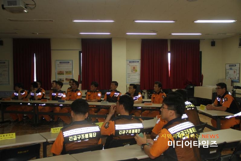 거제소방서 긴급구조통제단원 및 관할 센터장 등 30명이 참여한 이번 훈련은 다가오는 여름철 풍수해 재난상황에 대비한 단계별 근무체제 및 각 반별 대응활동에 대한 토론식 훈련을 실시했다.