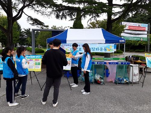 익산시는 원광대 중앙동아리 봉사분과 맑은하늘, 신동 통장협의회와 함께 25일 원광대 학생회관 새세대광장에서 올바른 쓰레기 분리배출 캠페인을 전개했다.