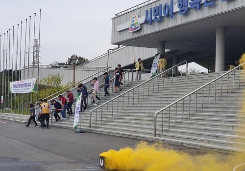익산시는 제412차 민방위의 날을 맞아 25일 익산실내체육관에서 화재대피 훈련을 실시했다.