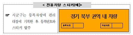 경기 북부 중점관리지역 밖에 있는 축산 관계차량이 경기 북부 중점관리지역 내 시·군을 진입하기 위해서는 사전에 광역 지자체에 전용차량 등록을 하고, 발급된 전용 스티커를 부착하여야 하며, 경기 북부 양돈 농장을 다녀온 후에는 다른 권역의 양돈 농장에 출입할 수 없다.