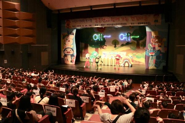 계양구 어린이급식관리지원센터는 지난 24일 식생활개선 교육 뮤지컬 ‘튼튼맨과 함께 가는 건강마을’ 공연을 계양문화회관 공연장에서 총 2회 실시했다.