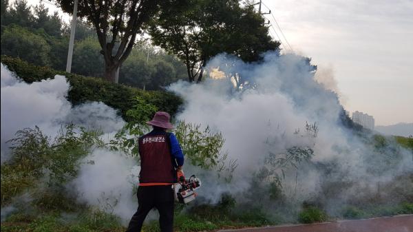 보건소 방역반은 특히, 양돈 농가가 많은 상패천과 신천 주변의 방역을 강화하여, 주 2회 실시하던 방역소독을 해뜨기 전에는 연막소독을, 낮에는 연무소독을 실시하는 등 일 2회 이상 꾸준히 실시하고 있다. 또한, 유충구제를 통해 모기 성충의 개체수를 감소시키고자 노력하고 있다.