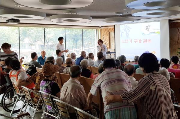 노인인구의 구강건강은 삶의 질에 중요 요인으로 작용하고 있지만 노인주거시설, 노인요양시설 등에 입소한 어르신의 절반 이상이 치아를 상실하고 씹기 불편 등을 호소하고 있는 실정이다. 이에 보건소는 관내 노인복지시설을 대상으로 신청을 받아 치과의사와 치과위생사가 시설을 직접 방문하는 구강검진사업을 진행한다.