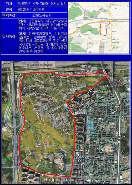인천검암역세권 공공주택지구 조성사업은 서구 검암동·경서동 일원 793,253㎡ 규모에 인천 검암역과 연계하여 도시첨단산업 및 인천서북부 복합환승센터를 도입한 친환경 복합 자족도시를 개발하는 공공주택사업으로, 공공주택 약 7,400세대가 공급되고 2022년 하반기 분양하여 2024년 사업을 완료할 계획이다.