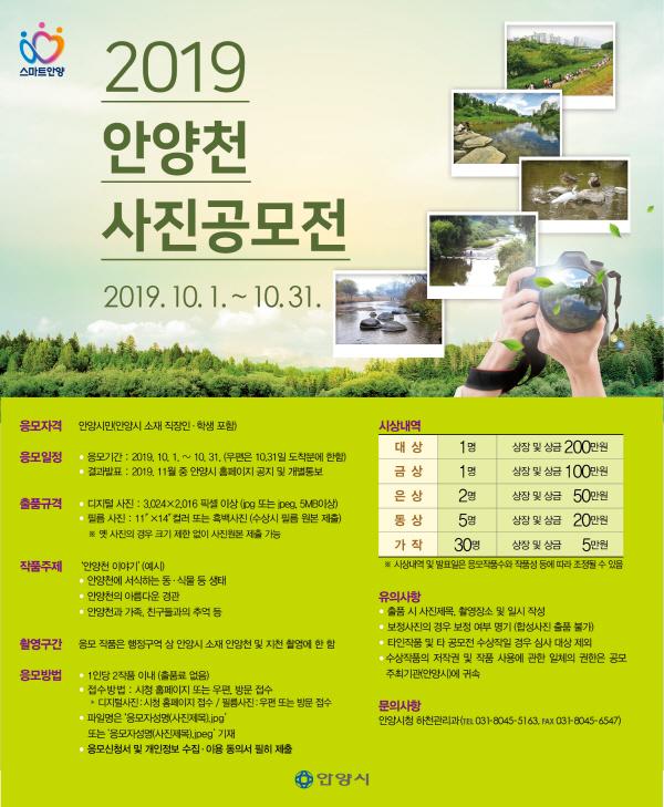 공모주제는‘안양천 이야기’, 안양을 통과하는 안양천을 비롯한 6대 지천의 경관과 동·식물 생태는 물론, 하천을 배경으로 가족 · 친척 · 연인과 함께 했던 추억을 떠올리는 어떤 장면도 좋다.