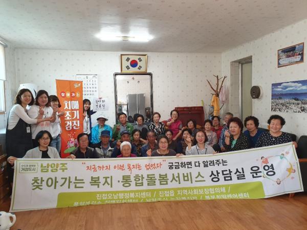 ‘찾아가는 복지·통합 돌봄서비스 상담실은 진접읍 지역사회보장협의체, 풍양보건소, 남양주시 노인복지관, 북부희망케어센터 관계자들이 함께 참여했으며, 지난 2월 20일 장현3리 경로당 방문을 시작으로 7개월간 운영됐다.
