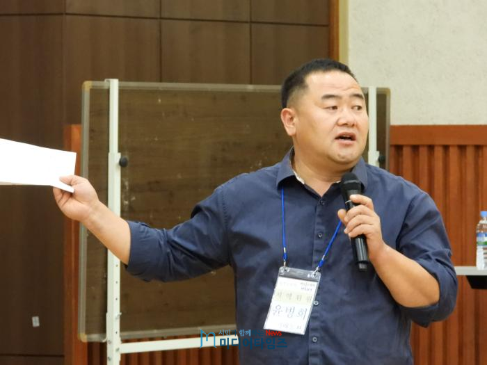 | 26일, 윤병희 기배동 지역회의 위원이 기배동 행정복지센터에서 열린 9월‘동부1권역 화성시민 지역회의'에서 사업 제안을 설명하고 있다. ⓒ미디어타임즈 |