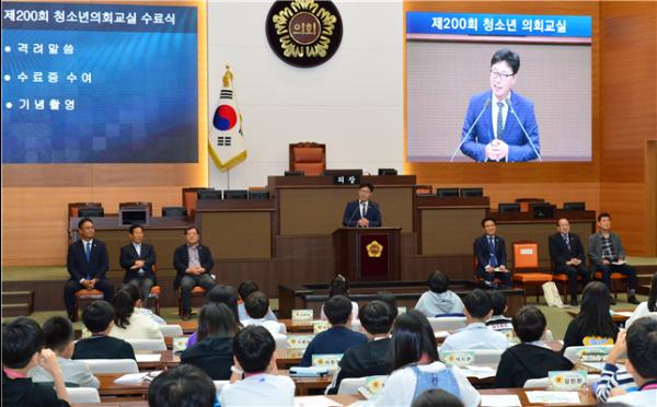 서울시의회 도시안전건설위원회 문장길 의원은 지난 26일 서울시의회 본회의장에서 열린 제200회 청소년 의회교실 수료식에 참석해 청소년들을 격려했다.