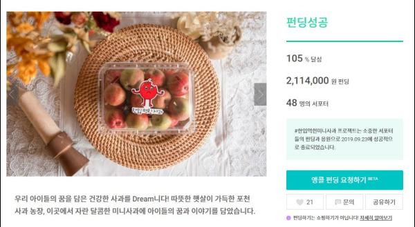 ‘6차 산업 한입 먹힌 사과 프로젝트’크라우드 펀딩 달성완료