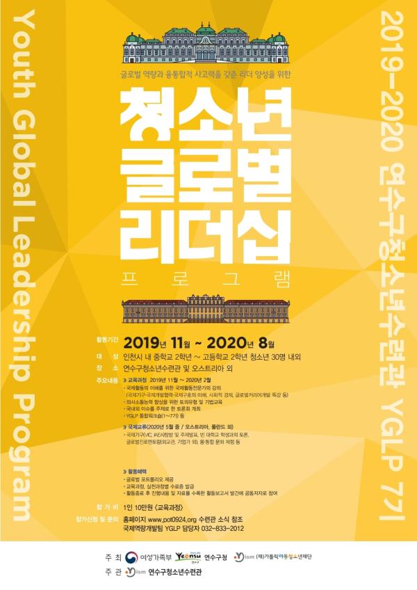 연수구청소년수련관은 청소년 글로벌 & 융·통합 리더십 역량강화 프로젝트인 ‘YGLP’ 7기에 참가할 청소년을 모집한다.