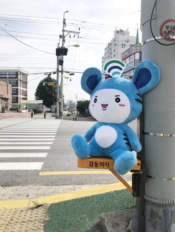 시는 노인뿐만 아니라 보행이 미숙한 어린이, 임산부 등 교통약자들의 안전한 도로 횡단을 돕기 위해 고읍중심상가 주변과 덕계동 시가지, 덕계공원사거리 주변 등 주요 도로변 횡단보도 64개소에 ‘감동의자’를 우선 설치했다.