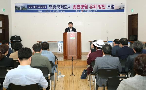 인천 중구는 지난 26일 영종동 행정복지센터 대강당에서 ‘영종국제도시 종합병원 유치 방안’이라는 주제로 포럼을 개최했다.