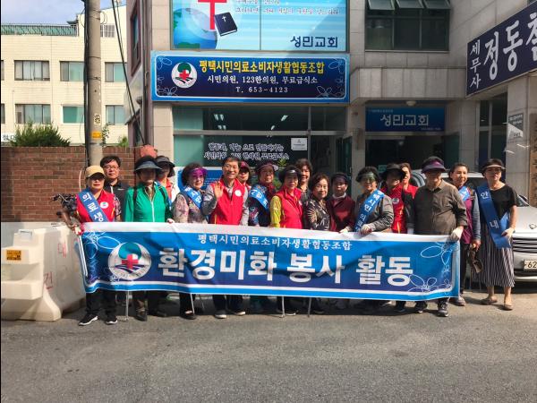 평택시민 의료소비자 생활협동조합은 27일 환경정화 봉사활동 발대식을 가지고 통복시장 일대에서 환경정화 활동을 실시했다.
