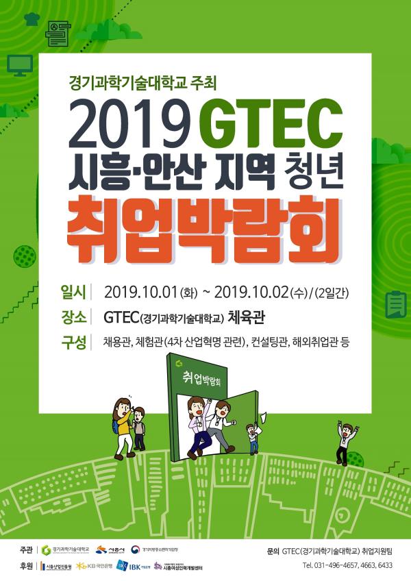 시흥시는 오는 10월 1일과 2일 양일간 경기과학기술대학교 체육관에서 ‘2019 GTEC 시흥·안산지역 청년 취업박람회’를 개최한다.