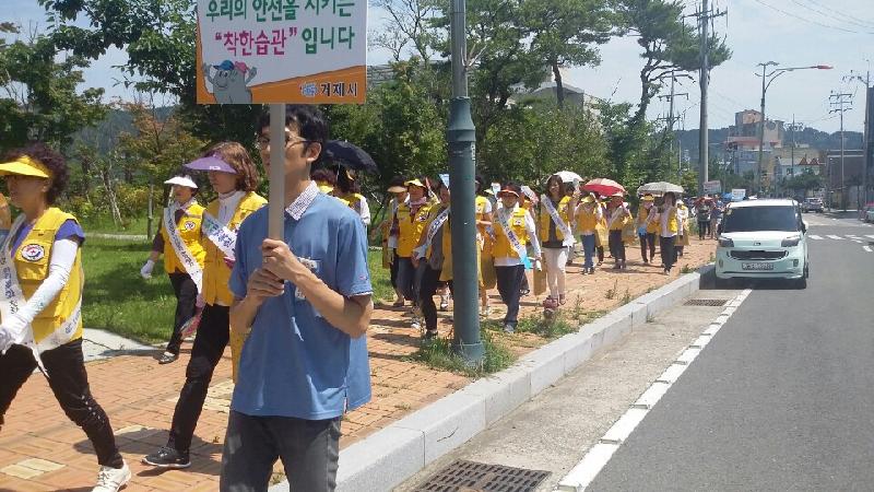 | 거제시 일운면 거제요트학교~거제씨월드 일대에서 물놀이 안전사고 예방 홍보 캠페인을 벌이고 있다. |