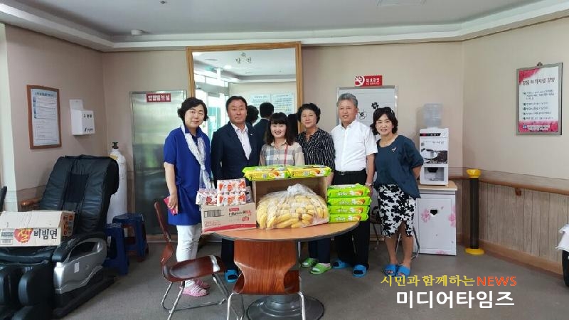 | 거제면에 소재한 노인요양원 ‘정원’에 방문하여 다과를 전달하고 ‘향수와 정’을 실은 아코디언 봉사 활동을 실시했다. |