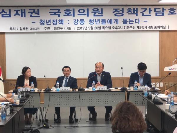 26일 강동구청 제2청사 중회의실에서 심재권 국회의원 주최, 황인구 서울시의원 주관으로 청년정책 관련 정책간담회 진행