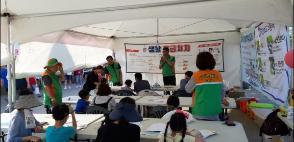 구리시 자율방재단은 제19회 구리 코스모스 축제를 맞이하여 지난 27일부터 29일까지 구리한강시민공원에서 ‘어린이 교통안전 교육 및 일상생활 속 작은 재난 대비 응급처치’체험 행사를 진행하여 시민들의 높은 호응을 얻었다.