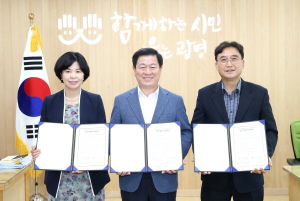 광명시는 30일 시장실에서 광명교육지원청, 광명동초등학교와 ‘광명동초 학교복합화 사업’을 위한 MOU를 체결했다.