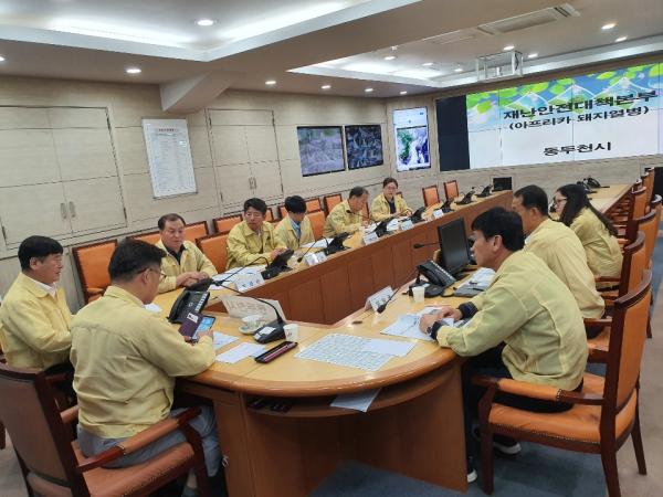또한, ‘범정부 아프리카돼지열병 방역대책 영상회의’ 후 진행된 재난안전대책본부회의에 참석한 최용덕 동두천시장은 앞으로 이동중지기간이 해제되어, 많은 축산 관련 차량들이 움직일 것을 대비하여 매뉴얼을 준수하여 방역할 것을 지시했다.
