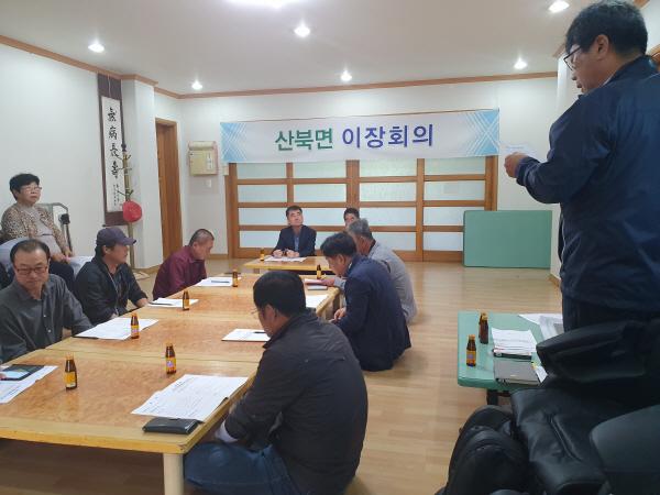 산북면은 마을별로 순회하며, 현장의 소리를 직접 듣고 소통하는 마을을 조성하기 위해 ‘찾아가는 이장회의’를 운영하고 있다.