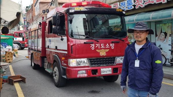 지난 26일 포천시 신읍동 중앙로105번길에서 신읍동 경기행복마을관리소 지킴이가 화재를 진압했다.