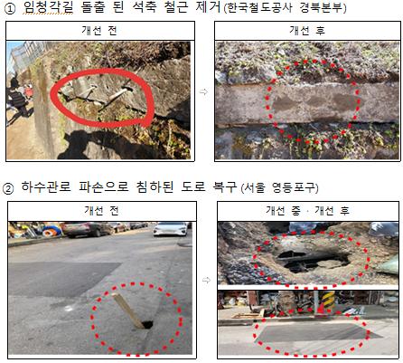 최근 4년간 가을 나들이 철에 총 12만 8천여 건의 안전신고로 안전위험요인을 개선함으로써 크고 작은 안전사고를 미연에 방지할 수 있었다. 붙임 1 사진 참고