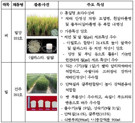 농촌진흥청은 올해 개발한 벼와 밀의 새 품종명을 공개 모집한다.