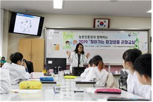농촌진흥청이 올해 전주시와 전북지역 소재의 소규모 초등학교를 대상으로 실시한 ‘찾아가는 어린이 환경생물 관찰교실’이 큰 호응을 얻었다.