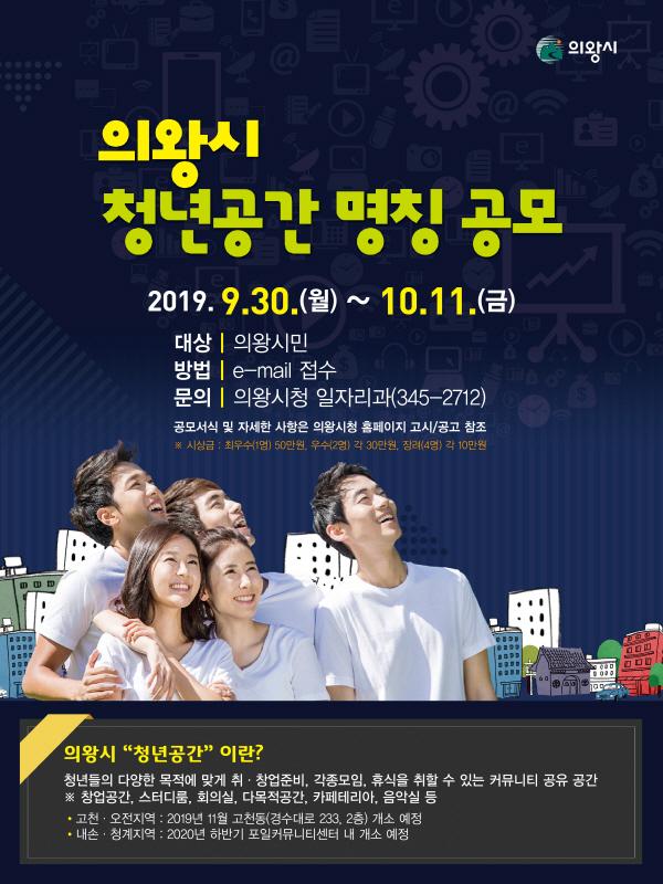 의왕시가 청년들을 위한 새로운 커뮤니티 공간으로 조성하는‘청년공간’에 대한 명칭을 공모한다.