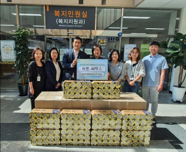 남양주시 ‘다산유승한내들 골든뷰’ 주민들이 30일 주변의 불우한 이웃을 위해 다산1동 사회보장협의체에 라면 40박스를 전달했다.