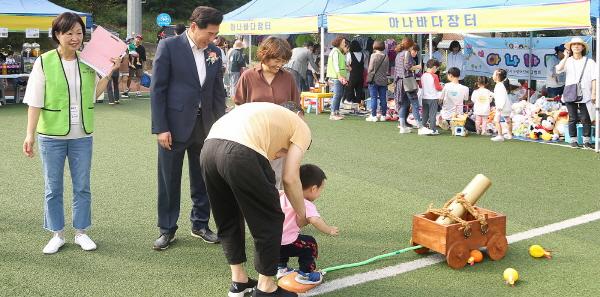 또한 아나바다, 먹거리장터, 신체체험 놀이터도 함께 마련돼 큰 관심을 모았다. 특히 아빠 육아 활성화를 위한‘아빠 골든벨을 울려라’와 어려운 아동을 돕기 위한 기금마련 행사도 함께 진행돼 더욱 뜻깊은 행사가 됐다.