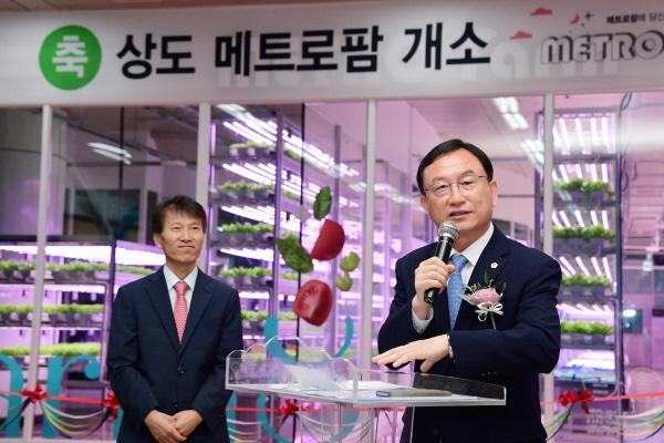박기열 부의장은 축사를 통해 “메트로팜은 지하철 역사 내 유휴공간을 활용해 주민들에게 안전한 먹거리를 제공할 수 있는 공간이자, 새로운 일자리를 창출해 지역사회 활성화에 기여하는 도시농업 저변 확대의 장”이라면서 “획기적인 발상을 통해 상도역에 훌륭한 메트로팜을 조성해주신 김태호 사장님 이하 서울교통공사 직원분들과 팜에이트 박종위 대표님께 감사드린다”고 말했다.