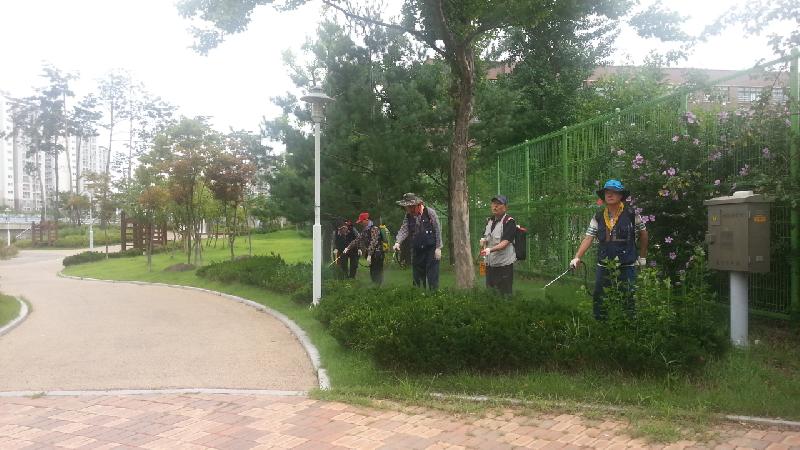 미국 선녀벌레는 최근 개체수가 크게 늘어 공원을 이용하는 시민들에게 불편을 주고 있어 이에 광명시가 현장기동반 2개조 8명을 동원하여 어린이공원의 주변에 대한 방제작업을 실시하게 되었다.