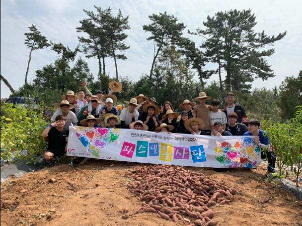 안산시자원봉사센터에서 운영하는 대학생연합 ‘파스텔봉사단’은 대부도 농가를 방문해 고구마 캐기 봉사활동을 진행했다고 1일 밝혔다.