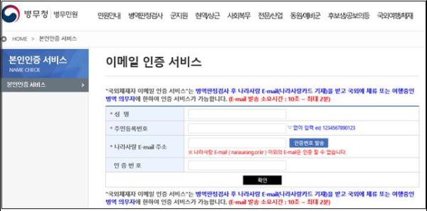 병무청은 10월 1일부터 국외에서 체재하는 병역의무자는 병무청 누리집에서 전자우편 본인확인 서비스를 사용하여 간편하게 민원출원이 가능하다고 밝혔다.