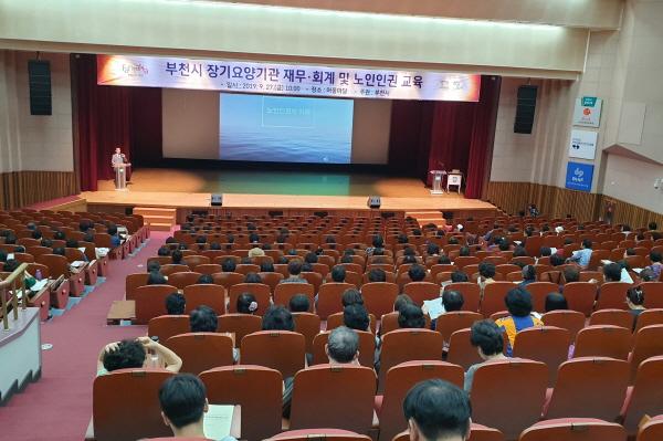 부천시는 지난 9월 27일 장기요양기관 운영자 및 종사자 300여 명을 대상으로 부천시청 어울마당에서 재무회계 및 노인인권교육을 했다고 1일 밝혔다.