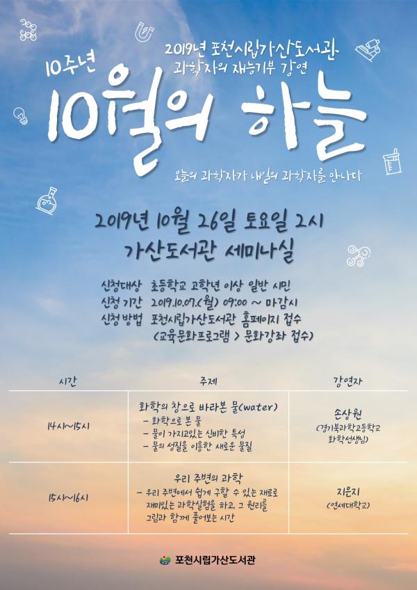 포천시립가산도서관과 포천시립영북도서관이 ‘10월의 하늘’ 개최지로 선정됐다.