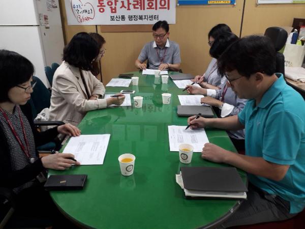 이번 회의는 오랜 기간의 실직과 만성질환으로 취직이 어려워 생활고에 시달렸던 장년 가구에 대해 긴급지원 및 공공근로사업을 연계를 통한 단기목표 달성에 따른 서비스 종결과 뇌경색 및 고혈압 등으로 건강이 안 좋아 식사도 잘 챙겨 드시지 못하는 독거노인의 의치 비용과 반찬 서비스를 지원하기 위한 신규 대상자 선정에 대한 서비스 연계에 대해 심도 있게 논의했다.